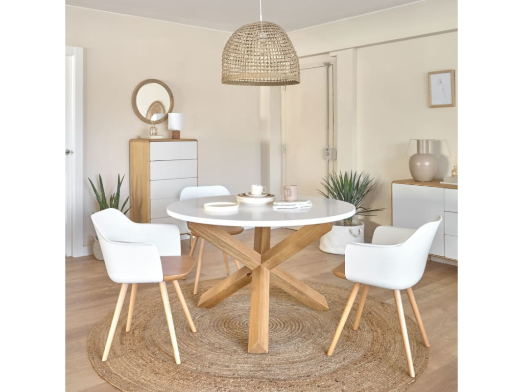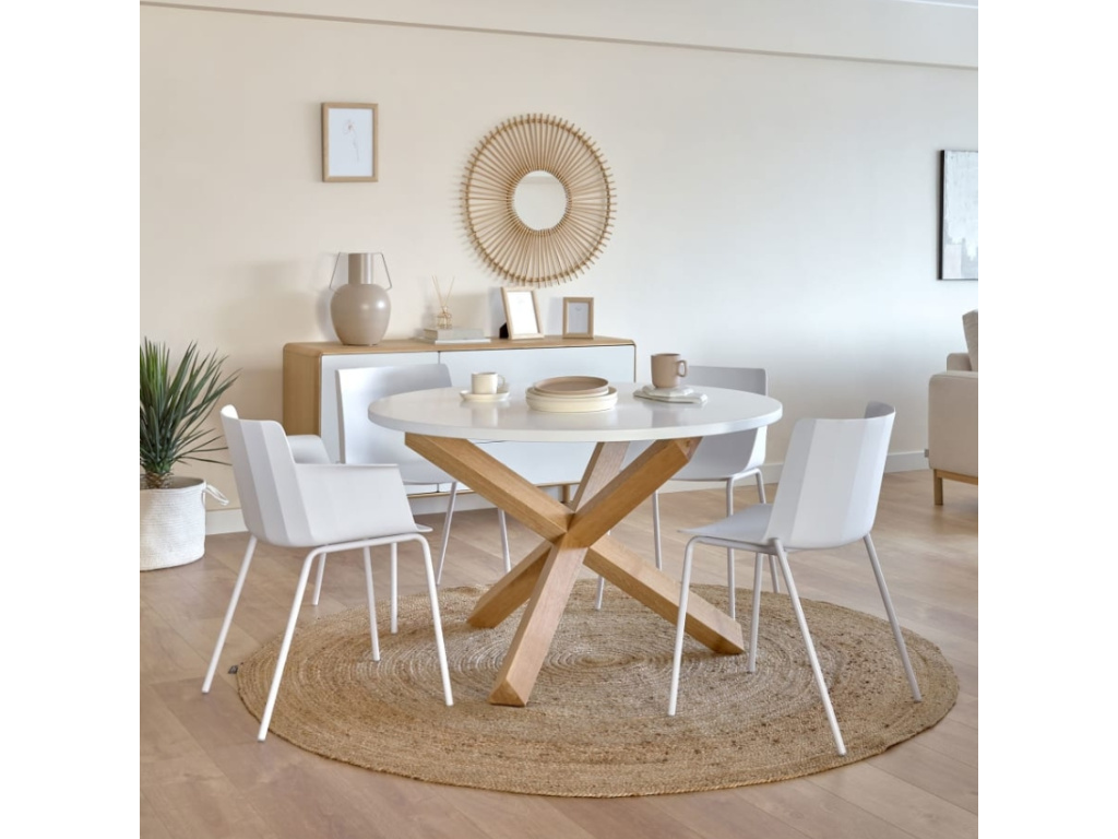 Moderní jídelní stůl Kave Home Lotus s dubovou podnoží a matnou bílou MDF deskou zaujme svou jedinečnou barevnou kombinací. Jídelna se díky němu promění v útulné místo, ze kterého nebudete chtít dobrovolně odejít. Podnož je řešena jedinečným kříženým způsobem, jenž produkt dostane v zajímavosti ještě o stupeň výš. Pořiďte si tento originální kus designového nábytku, který ozvláštní i vaši domácnost.