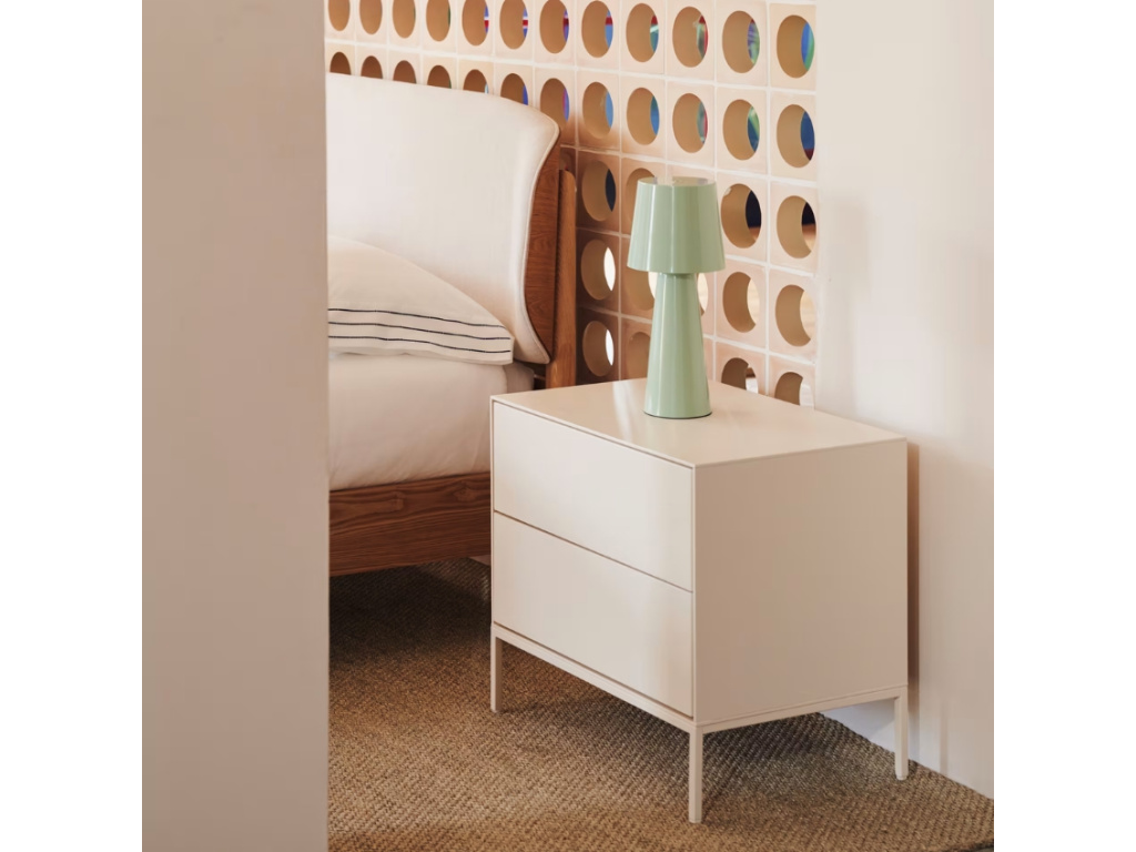 Noční stolek Vedrana pochází ze stejnojmenné série nábytku vytvořeného týmem Kave Home. Tyto úložné prostory jsou velice praktické a skvěle se hodí do industriálních i minimalistických interiérů. Spojení bíle lakovaného MDF a světlé kovové podnože je nejen nadčasové, ale hlavně velice elegantní. Tento noční stolek nabízí úložný prostor v podobě dvou prostorných zásuvek. Využít ho však můžete nejen v ložnici, skvěle poslouží také jako malá komoda nebo odkládací stolek. Sjednoťte úložné prostory ve vaší domácnosti a vpusťte do ní sérii Vedrana! Vybírat můžete z úložných prostor různých druhů a velikostí, všechny jsou dostupné nejen v bíle lakovaném provedení, ale také v provedení dub a ořech.