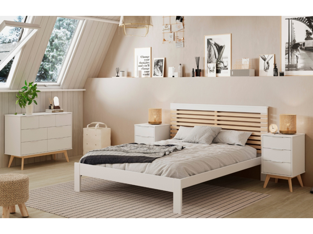 Noční stolek Marckeric Campus se stane jedinečným a praktickým doplňkem vaší ložnice. Obdélníkový lakovaný korpus z MDF nabízí úložný prostor ve 3 praktických zásuvkách. Atraktivní kontrast dodává stolku podnož z borovicového dřeva a díky svému jednoduchému designu se hodí nejen do moderních, ale i klasických interiérů. Doporučujeme tento kousek kombinovat i s ostatními produkty ze stejné kolekce, získáte díky tomu dokonalou souhru nábytku ve vašem interiéru.