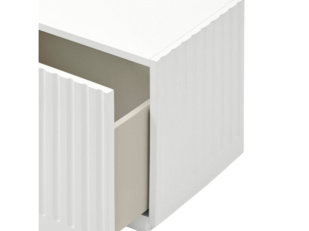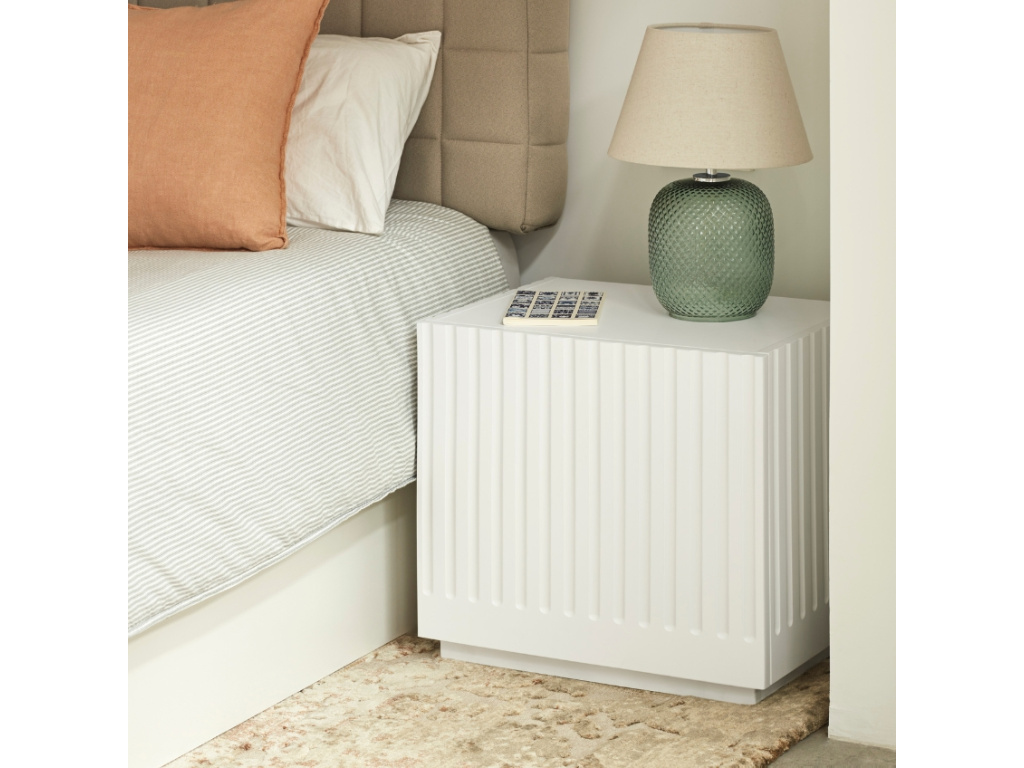 Minimalistický noční stolek Doric od španělské značky Teulat vám umožní mít vše důležité po ruce, když se pohodlně uvelebíte v posteli. Díky nadčasovému designu je ideálním doplňkem každého moderního interiéru. Zajímavým designovým prvkem je vzorek na předních dvířkách a po stranách, který nábytku dodává na osobitosti a stylu. Noční stolek je vyrobený z lakovaného MDF v elegantní bílé barvě. Disponuje praktickou velkou výsuvnou zásuvkou.
