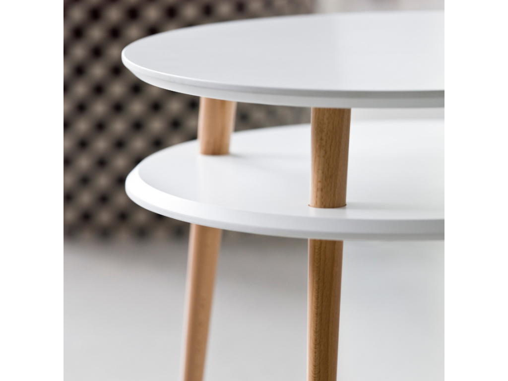 RAGABA UFO je minimalistický odkládací stolek, který ztělesňuje podstatu skandinávského designu. Deska stolku a police jsou vyrobené z lakovaného MDF a elegantní nádech dodává stolku zešikmená vysoká podnož z bukového masivu. Police poskytuje praktický úložný prostor na oblíbené drobnosti, jako je ovladač či mobilní telefon. UFO se bude skvěle vyjímat v moderních interiérech například vedle pohovky či křesla.