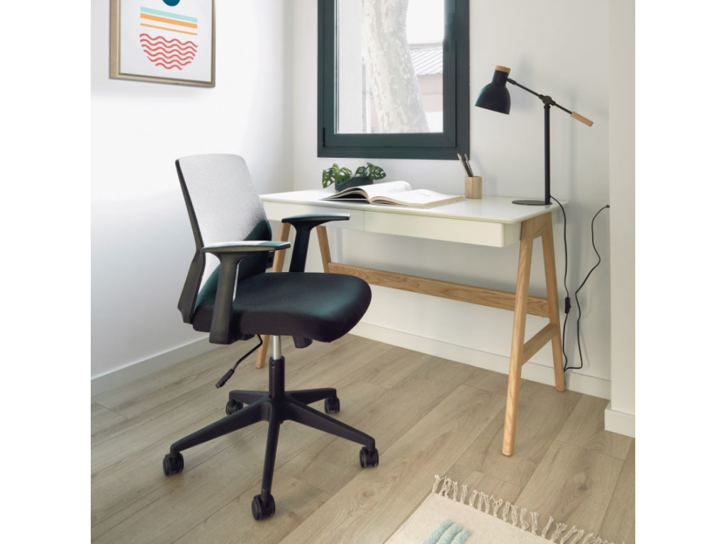 Pracovní stůl Kave Home Dyana v nestárnoucím barevném spojení bílé lakované MDF desky a podnože z dubového přírodně zbarveného dřeva vnese do každého interiéru vánek skandinávského designu. Stůl nabízí úložný prostor v podobě dvou zásuvek, které pojmou nejrůznější drobnosti a psací potřeby. Díky své ideální velikosti představuje skvělou volbu pro menší interiéry, do kterých dodá potřebnou pracovní plochu a také moderní styl.