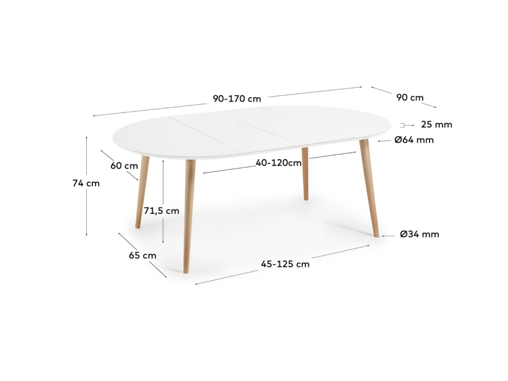 Elegantní jídelní stůl Kave Home Oqui si zamiluje každý, kdo rád efektivně a stylově šetří místo. Stůl je kulatý a po rozložení do oválného tvaru se ke stolování může přidat až 6 osob. Deska je vyrobená z matně lakované MDF desky a spolu s podnoží z bukového dřeva působí moderním a svěžím designem. Hodí se do menších bytů i prostorných jídelen v nádechu skandinávského stylu.