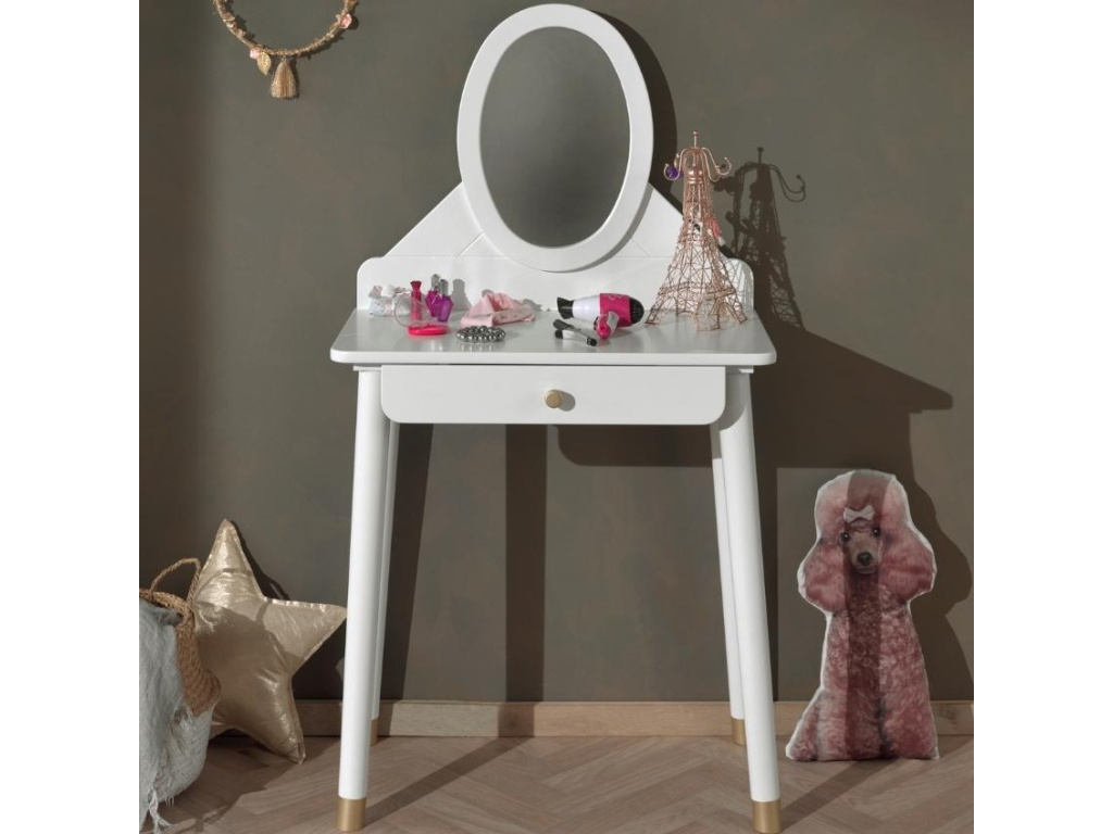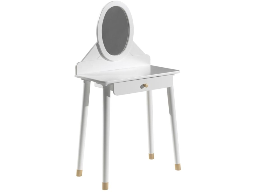 Toaletní stolek Vipack Billy zaujme svým jednoduchým a elegantním designem. Korpus z lakovaného MDF, borovicová podnož a zlatě lakovaný detail na podnoži vytváří efektivní propojení moderních materiálů a dodá tak dětskému pokojíčku patřičný styl a unikátnost. Úchytka je rovněž ve zlaté barvě. Pro svou typickou stylizaci se hodí nejen do moderních skandinávských interiérů. Vykouzlete společně s dalšími produkty z řady Billy jedinečnou atmosféru a perfektně vyladěný pokoj pro vaše malé parádnice.