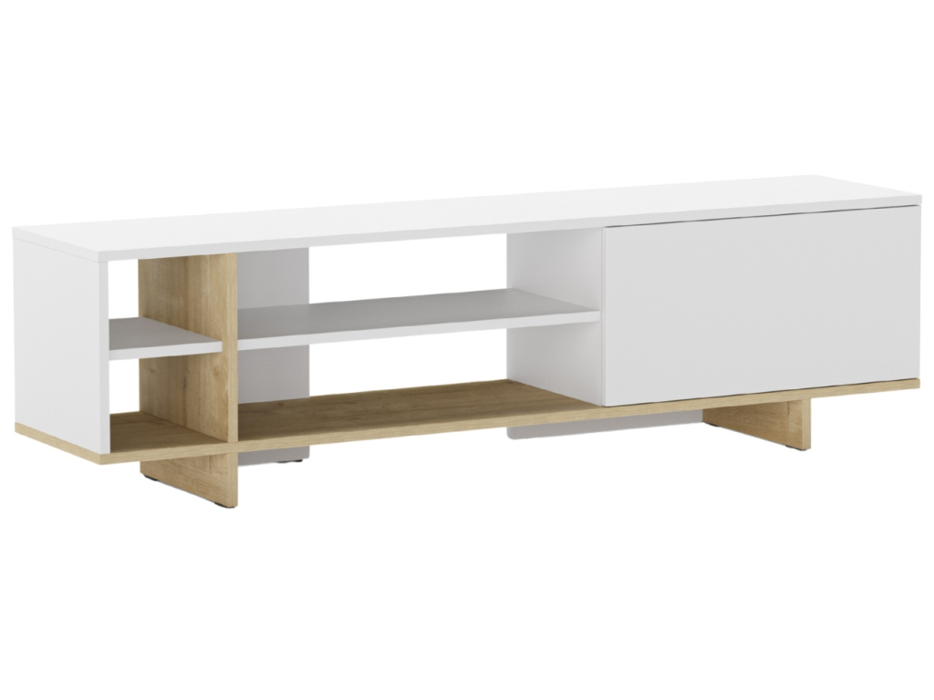 Podívám seBílý lakovaný TV stolek Cequoia 160 x 35,5 cm s dubovým dekorem