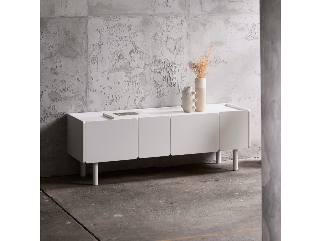 TV stolek z kolekce Bera od dánské značky Unique Furniture je ideálním spojením moderní elegance a chytré praktičnosti. Je vyroben z bíle lakovaného MDF, jehož čistý povrch působí svěže a nadčasově, a díky certifikaci FSC™ MIX si můžete být jisti, že pochází z odpovědně spravovaných zdrojů. Za dvířky se ukrývá dostatek prostoru pro vše, co chcete mít přehledně uspořádané a elegantně skryté. Díky svému minimalistickému provedení se stolek snadno začlení do moderních i skandinávsky laděných interiérů, kde vynikne její lehkost a svěží charakter. Součástí kolekce Bera jsou také komody, takže svůj domov můžete sladit do jednotného, elegantního celku.