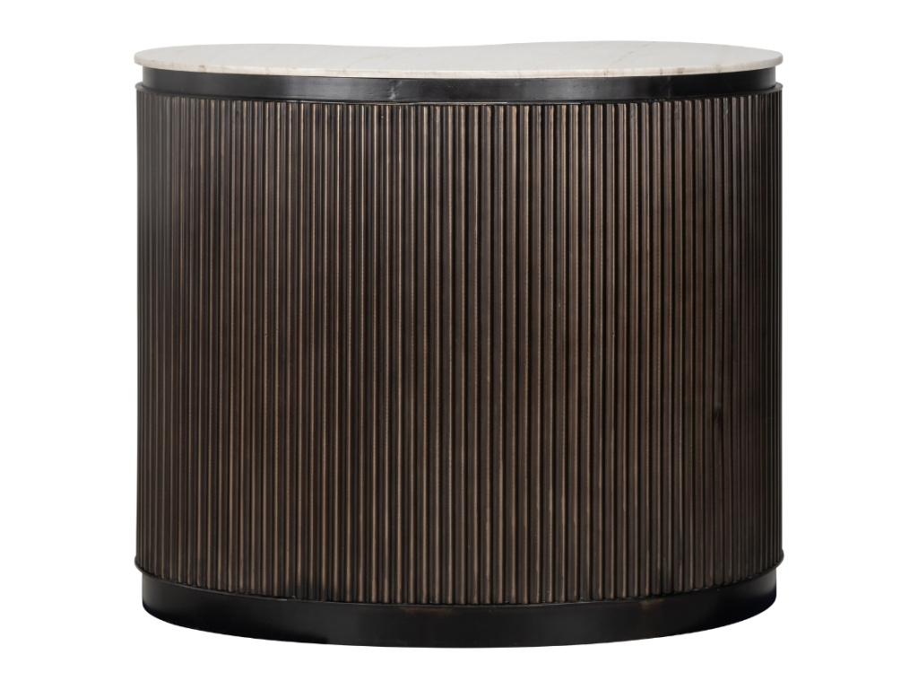 Produktová série Mayfield od značky Richmond nabízí stolky hned v několika provedeních. Bílou mramorovou desku barového stolu doplňuje originálně tvarovaná podnož z mangového dřeva, která disponuje úložným prostorem v podobě dvou uzavřených polic. Stolek využijete v obývacích pokojích, chodbách či jídelnách, kde vám poslouží jako prostorná plocha nejen k odkládání věcí, ale využít ho můžete jako místo, kde si s přáteli posedíte u skleničky dobrého pití. Produkty Mayfield se hodí také do komerčních prostorů. Slaďte interiér k dokonalosti se značkou Richmond!