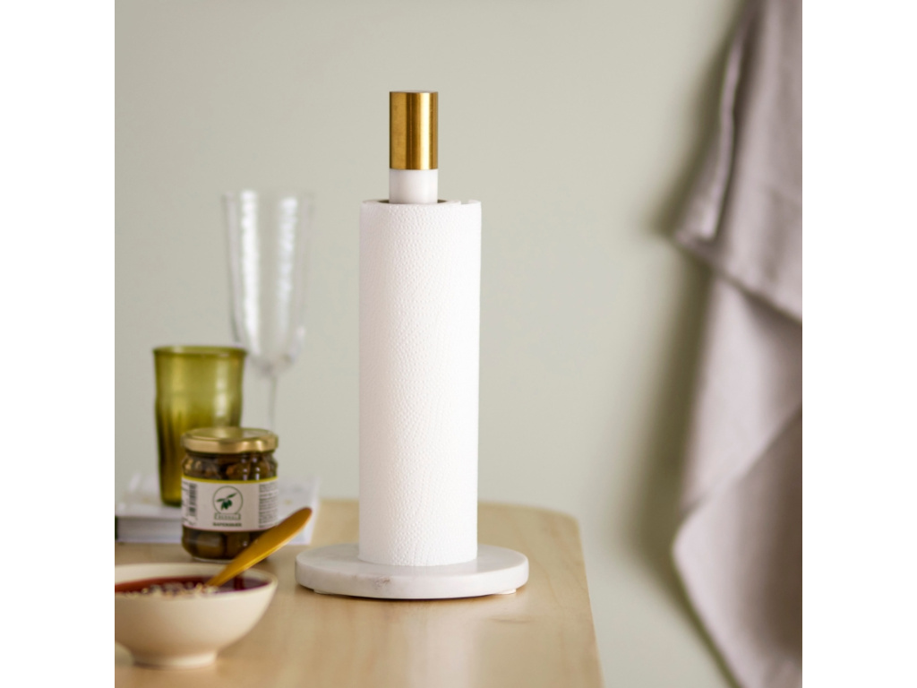 Elegantní držák na roli kuchyňských utěrek Bloomingville Emira vás nadchne svým jednoduchým a nadčasovým designem. Je vyroben z bílého mramoru a ozvláštněn kovovým koncem. Na jídelním stole se držák zároveň stane stylovou dekorací, která díky použitému materiálu přinese nádech luxusu.
