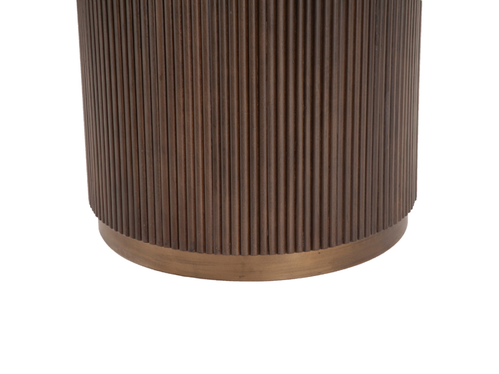 Jídelní stůl Mayfield od značky Richmond spojuje luxusní mramor s hřejivým dřevěným prvkem. Jeho masivní centrální podnož s lamelovou texturou dodá interiéru jedinečný charakter, zatímco kulatá mramorová deska přinese eleganci a nadčasovost. Tento kousek je ideální pro minimalistické nebo industriální prostory, kde vynikne svou jednoduchostí a sofistikovaným vzhledem. Je dostupný ve dvou průměrech, takže se skvěle přizpůsobí vaší jídelně. Stane se designovým středobodem každého společného stolování.