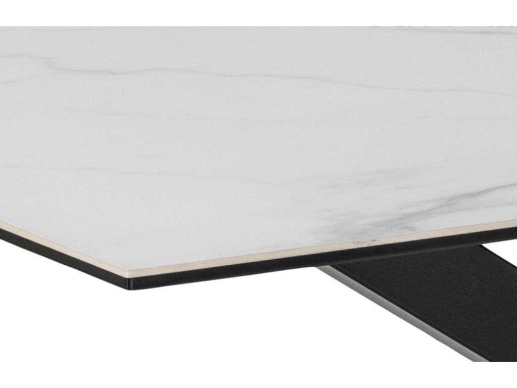 Skyline je elegantní jídelní stůl, který se stane dominantou vašeho interiéru. Pevná keramická deska stolu má bílo šedou barvu a je doplněná černou kovovou podnoží. Díky svému rozměru je stůl velmi prostorný a pohodlně pohostí až šest lidí.