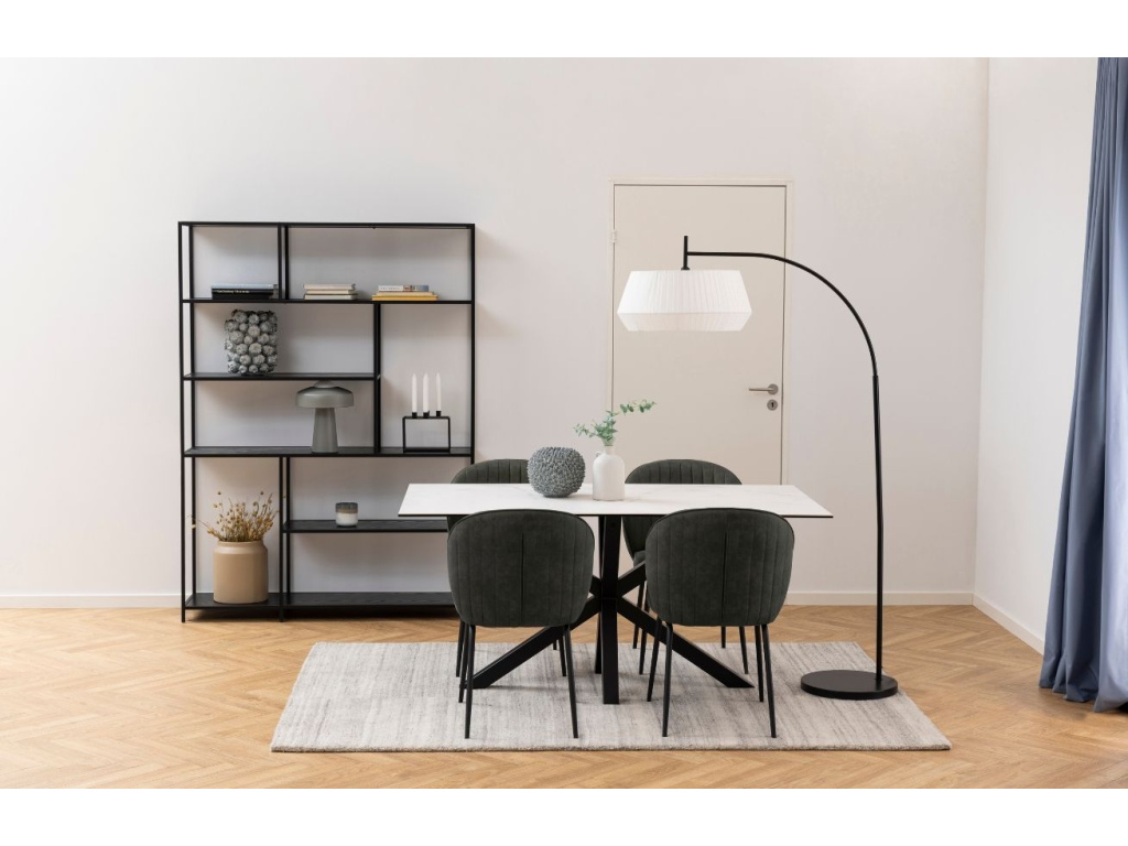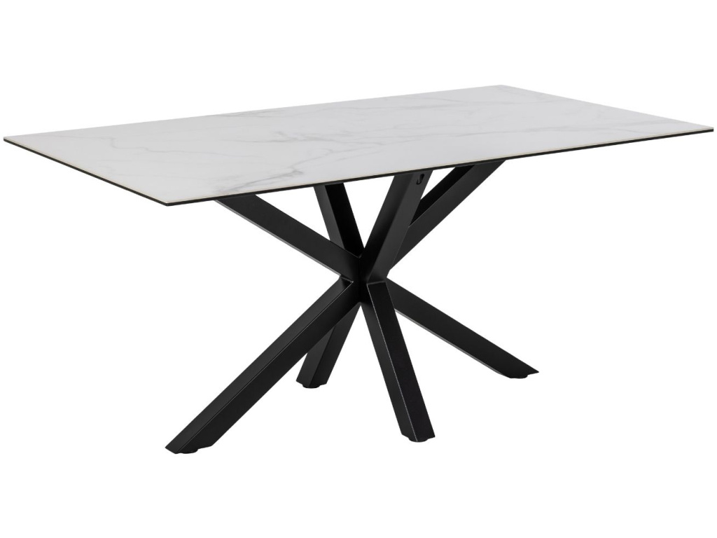 Skyline je elegantní jídelní stůl, který se stane dominantou vašeho interiéru. Pevná keramická deska stolu má bílo šedou barvu a je doplněná černou kovovou podnoží. Díky svému rozměru je stůl velmi prostorný a pohodlně pohostí až šest lidí.