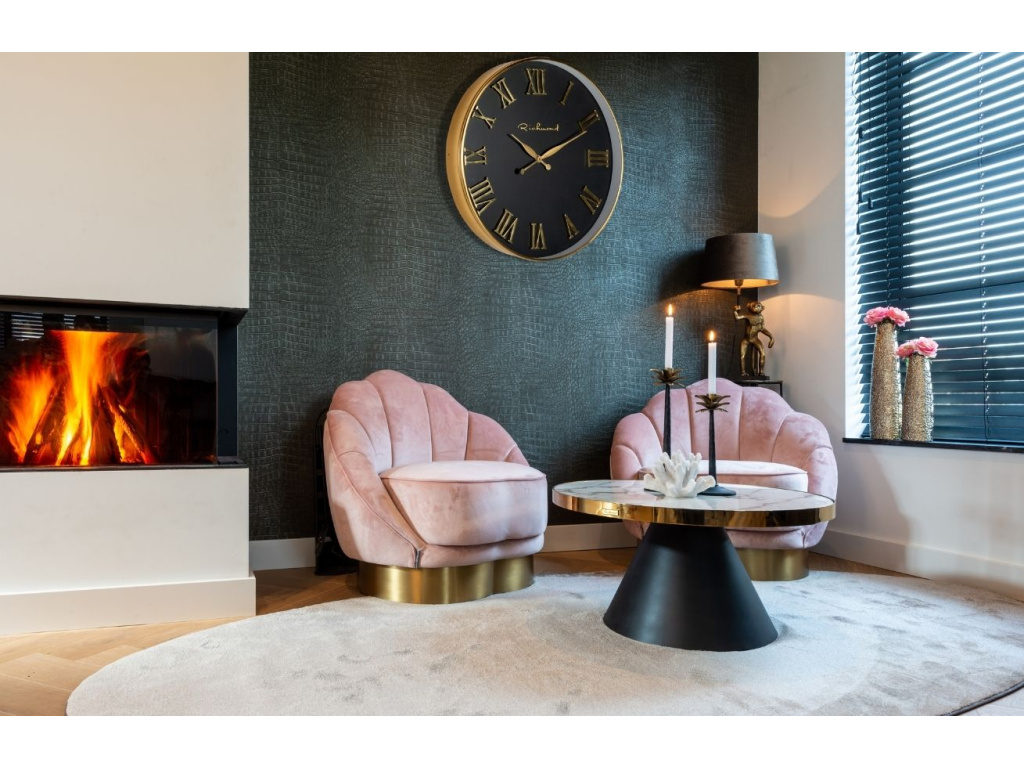 Kulatý konferenční stolek Odin od značky Richmond Interiors si zamilujete díky elegantnímu zpracování. Bílá mramorová deska a černá kovová podnož ve tvaru kuželu vytváří atraktivní kombinaci, díky níž stolek získává na šarmu a osobitosti. Příjemný designový prvek pak tvoří zlatý okraj desky stolu. Tento stylový kousek vynikne v klasických i moderních interiérech.