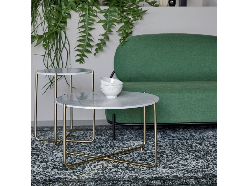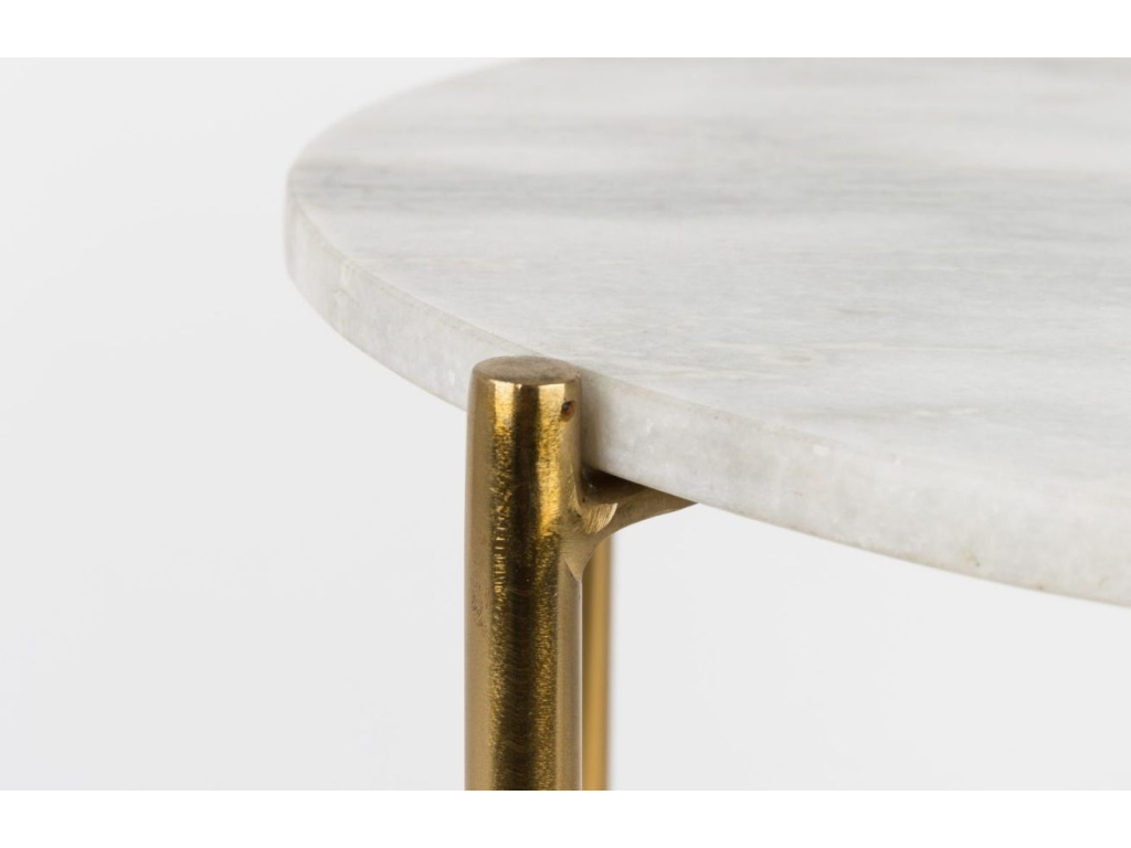 Konferenční stolek WLL TIMPA zaujme na první pohled svým neotřelým designem. Masivní mramorová deska v bílé barvě a subtilní, zlatě lakovaná, kovová podnož vytváří společně atraktivní kontrast, který do vašeho interiéru vnese nádech luxusu a elegance. Stolek se skvěle hodí do moderních i klasických interiérů, a to především díky nadčasovému vzhledu.