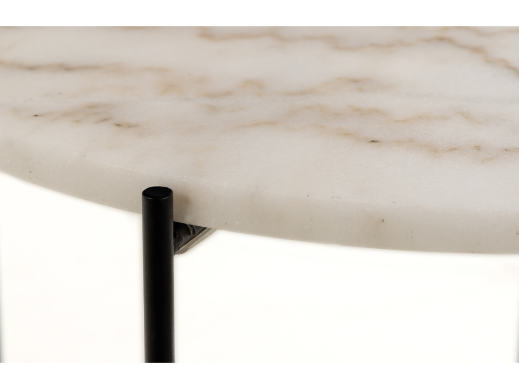 Představujeme vám stolek Avila od značky Scandi. Tento kulatý odkládací stolek je tvořen mramorovou deskou a černou kovovou podnoží. Krásné mramorové žilkování vnese do vašeho interiéru rustikální element. Odložte si na něj sklenici s vodou, ovladač od TV nebo něco dobrého k snědku. Bude se skvěle vyjímat v obývacím pokoji v přítomnosti dalšího světlého nebo tmavého nábytku, a tím skvěle doplní váš minimalistický nebo industriální interiér. Udělejte si radost touto designovkou!