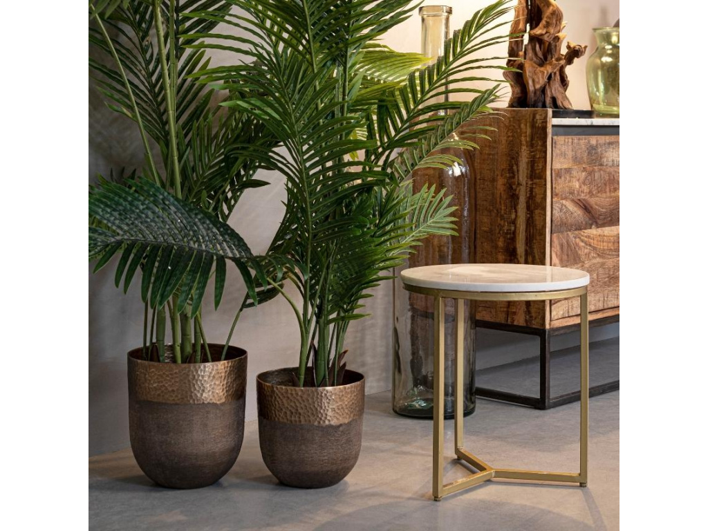 Designový odkládací stolek Enix od italské značky Bizzotto zaujme na první pohled svým vzhledem. Mramorová deska v bílé barvě a zlatě lakovaná ocelová podnož vytváří společně kontrast, který do vašeho interiéru vnese nádech elegance. Stolek se skvěle hodí do moderních i klasických interiérů.