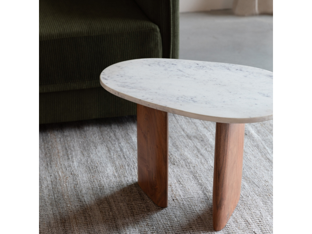 Chcete-li vašemu domovu dodat osobitý styl a příjemnou atmosféru, bude odkládací stolek TANDA od značky White Label Living právě pro vás. Stolek vás dostane svými jednoduchými elegantními křivkami s organicky tvarovanou mramorovou deskou, která příjemně ladí s podnoží z akátového dřeva. Stolek díky svému nadčasovému designu vynikne v moderním i vintage interiéru a vytvoří v něm útulný prostor.