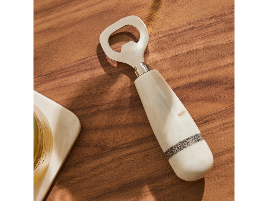 Otvírák s mramorovou rukojetí z kolekce Nira se skvěle hodí k přípravě nápojů během večeře s přáteli, stylového pikniku nebo jako luxusní doplněk do domácího baru. Je vyroben z bílého mramoru s tenkým pruhem z tmavého mramoru, který vytváří elegantní kontrast. V kolekci naleznete také servírovací prkénka různých velikostí a sadu čtyř podtácků. Tyto doplňky jsou ideální pro každodenní stolování i oslavy a skvěle se hodí do světlých, moderních interiérů, minimalistických kuchyní či elegantních komerčních prostor. Nira je kolekce, která promění servírování v estetický zážitek!