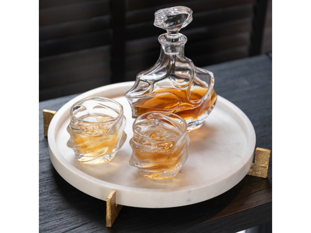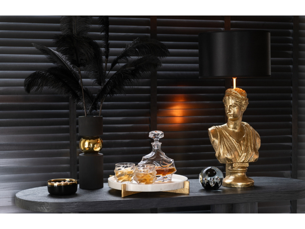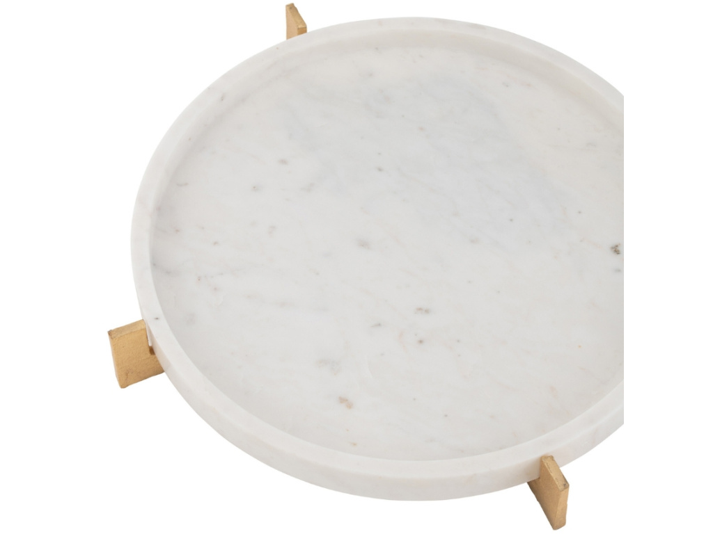 Stylový a elegantní podnos Marley od značky J-Line dodá vašemu stolování nádech luxusu. Mramorová deska na kovové, zlatě lakované základně ve tvaru X bude ozdobou každého moderního interiéru. Nejlépe jej využijete při servírování, ale lze jej také použít jako dekoraci pro vystavení nebo uschování vašich drobností – např. bižuterie nebo kosmetiky.