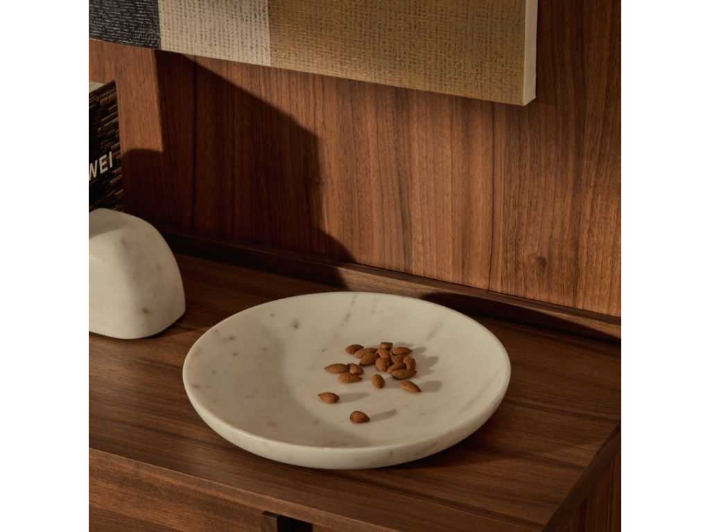 Servírovací talíř Kave Home Ecin je vyrobený z bílého mramoru, takže každý kus je exkluzivní s vlastními žilkami a odstíny. Dostupný je ve třech různých velikostech a také v zelené barvě – všechny tyto kousky přinesou na váš stůl nádech elegance a luxusu. Naservírujte na ně drobné občerstvení a slané i sladké pochutiny, nebo je využijte k vystavení drobných dekorací a svíček.