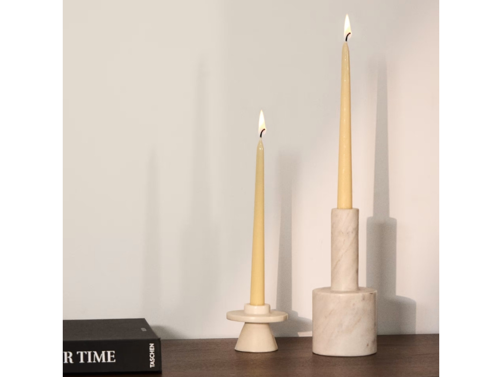 Svícen Zalvori z bílého mramoru zaujme svou přirozenou elegancí a jemnými liniemi. Jeho povrch jemně odráží světlo a vytváří decentní lesk, který dodá interiéru nádech sofistikovanost. Každý kus je originál – s jedinečnými tóny a texturou mramoru, které z něj dělají drobný, ale výjimečný detail vašeho domova.