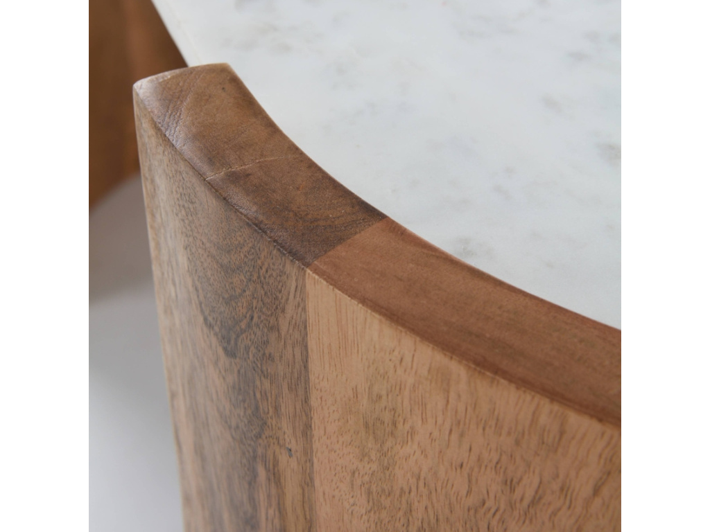 Toaletní stolek ILSE od značky Jotex spojuje nadčasovou eleganci s kvalitními přírodními materiály a pečlivým zpracováním. Díky vyváženým proporcím se stane nejen praktickým kouskem nábytku, ale i stylovým doplňkem vašeho interiéru. Mramorová deska je výrazným a jedinečným prvkem tohoto stolku – každý kus má svou vlastní kresbu, díky které je zcela originální. Mramor nejen krásně vypadá, ale je také odolný a snadno se udržuje, což zaručuje jeho dlouhou životnost. Podnož z masivního mangového dřeva přidává stolku pevnost a zároveň vnáší do prostoru příjemný přírodní nádech. ILSE se stane skvělým doplňkem nejen pro ložnici, ale také pro obývací pokoj, chodbu či koupelnu, kde může sloužit jako odkládací plocha pro vaše každodenní drobnosti. Díky své nadčasovosti a preciznímu provedení se stane nepostradatelnou součástí vašeho domova, která vás bude těšit každý den.