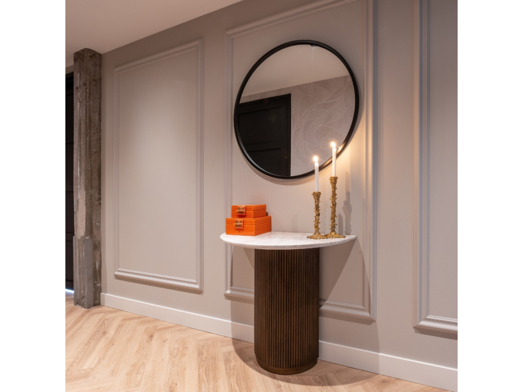 Produktová série Mayfield od značky Richmond nabízí stolky hned v několika provedeních. Bílou mramorovou desku toaletního stolku doplňuje originálně tvarovaná podnož z mangového dřeva. Využijete ho jako elegantní doplněk do vstupních prostor či obývacího pokoje, kde vám poslouží jako prostorná plocha nejen k odkládání věcí, které chcete mít po ruce, ale může sloužit i jako místo na dekorace či květiny. Produkty Mayfield se hodí také do komerčních prostorů. Slaďte interiér k dokonalosti se značkou Richmond!