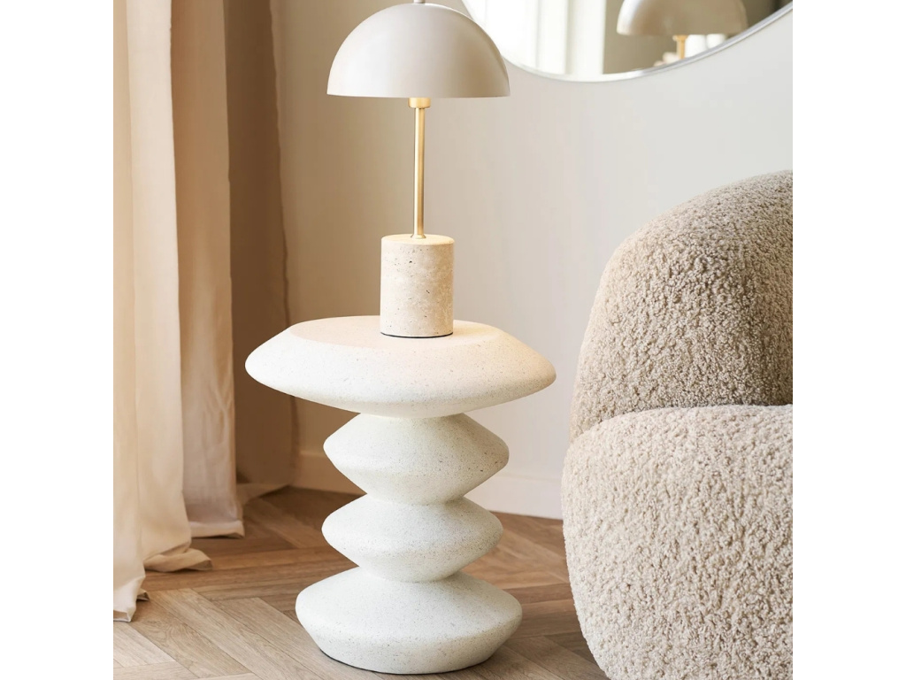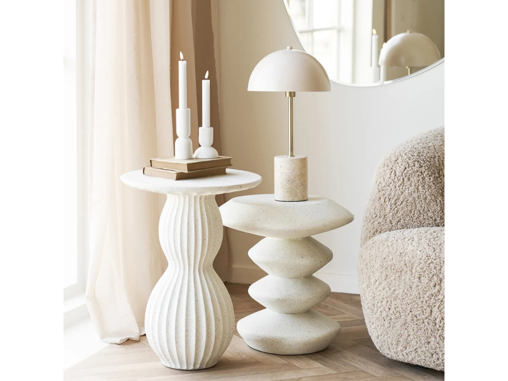Odkládací stolek Newton zaujme na první pohled svým originálním sochařským tvarem, který v interiéru vytvoří poutavý designový akcent. Hladký povrch v jemném odstínu dodá prostoru lehkost a čistotu, zatímco výrazné linie zvýrazňují jeho osobitý charakter. Pečlivě tvarovaná konstrukce umožní, aby stolek vynikl samostatně jako esteticky silný prvek a zároveň přirozeně splynul s ostatním nábytkem, čímž podpoří celkovou eleganci interiéru. Praktická odkládací plocha nabídne místo pro dekorace, knihy nebo šálek kávy a přispěje k útulné atmosféře domova. V obývacím pokoji, ložnici i na terase snadno doplní prostor a vnese do něj klidný, harmonický nádech, který podpoří příjemné chvíle relaxace.