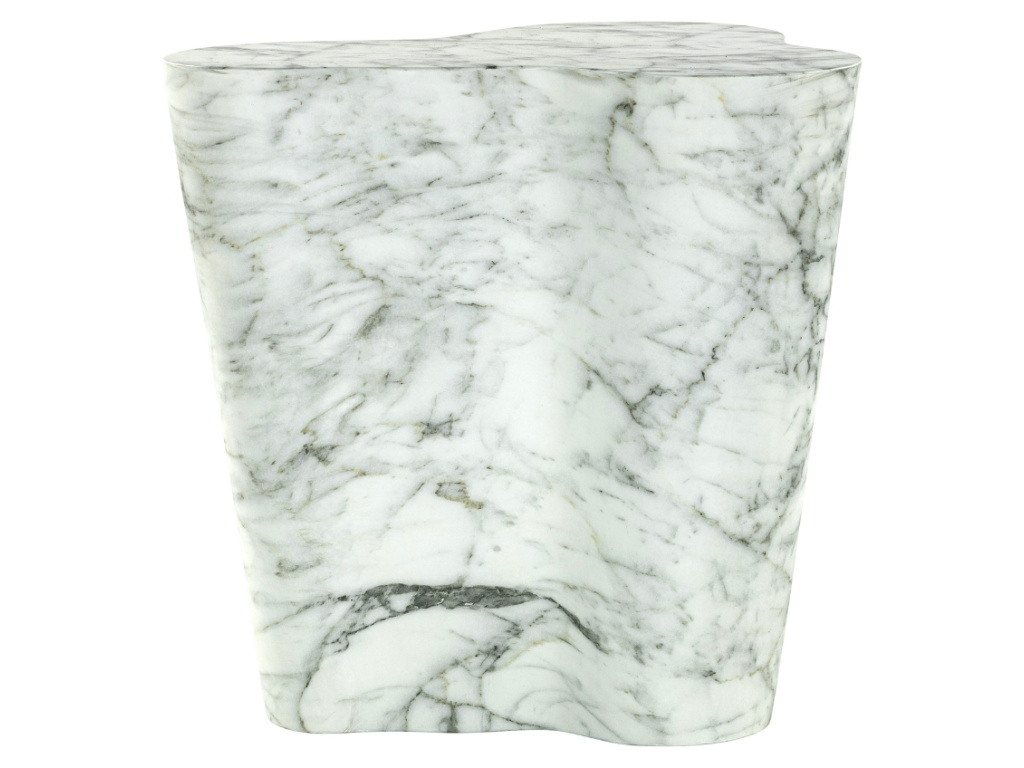 Tento odkládací stolek z kolekce Rockyard s nepravidelným organickým tvarem se stane designovým doplňkem pro menší prostor nebo vedle pohovky. Konstrukci z cementu, akrylu a skleněného vlákna zdobí povrch imitující přírodní bílý mramor. Rockyard je ideální pro odkládání drobností nebo jako prostor pro lampu či květinovou dekoraci. Jeho přirozená estetika přinese do interiéru svěžest a nenucenou eleganci.
