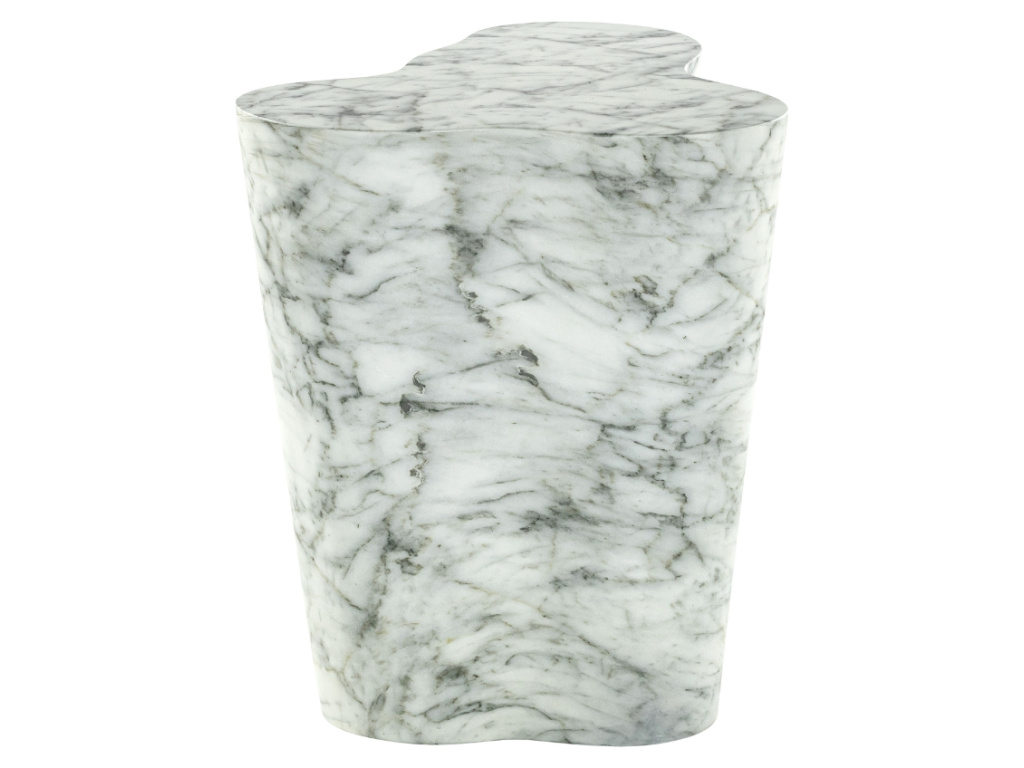 Tento odkládací stolek z kolekce Rockyard s nepravidelným organickým tvarem se stane designovým doplňkem pro menší prostor nebo vedle pohovky. Konstrukci z cementu, akrylu a skleněného vlákna zdobí povrch imitující přírodní bílý mramor. Rockyard je ideální pro odkládání drobností nebo jako prostor pro lampu či květinovou dekoraci. Jeho přirozená estetika přinese do interiéru svěžest a nenucenou eleganci.