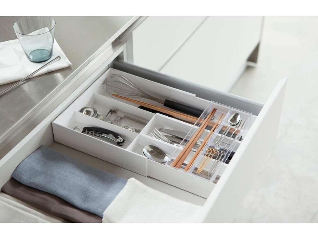 Organizér na příbory Tower od značky Yamazaki je ideální volbou pro každého, kdo chce efektivně využít prostor v kuchyňské zásuvce a zároveň udržet příbory přehledně a snadno dostupné. Tower je vyroben ze zdravotně nezávadného ABS plastu. Jednou z hlavních výhod tohoto organizéru je jeho schopnost přizpůsobit se délce zásuvky. Tento praktický doplněk přinese do vaší kuchyně pořádek a eleganci. Vybírat u nás můžete ze dvou variant – organizér je dostupný v bílé i černé barvě.