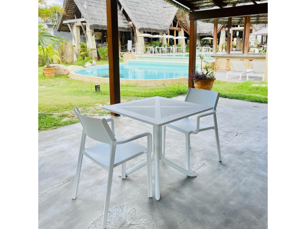 Doplňte svůj venkovní prostor moderním zahradním stolem Clip od značky Nardi. Jeho jednoduchý, ale zároveň stylový design s perforovanou deskou skvěle doplní každý exteriér i interiér. Je vyrobený z velmi odolného sklolaminátového polypropylenu, který je snadno omyvatelný a udržovatelný. Nejen proto je ideálním řešením pro restaurace, kavárny a menší terasy. Dostupný je ve více barvách a v menší velikosti.
