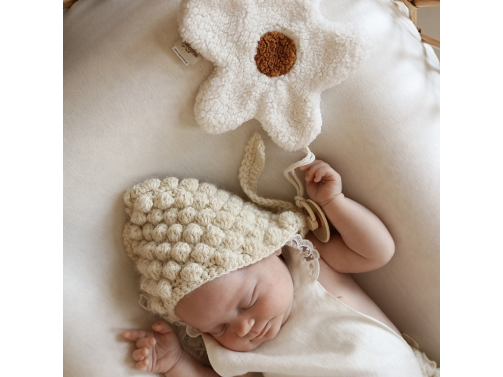 K této heboučké sedmikrásce se rádo přitulí každé děťátko. Bude tady, ať už bude potřeba si hrát nebo se odebrat do říše spánků. Měkoučká látka, která je opatřena certifikací CE, bude hebká na dotyk a příjemně pohladí dětskou pokožku. Díky praktickému poutku můžete muchláčka zavěsit na dudlík.