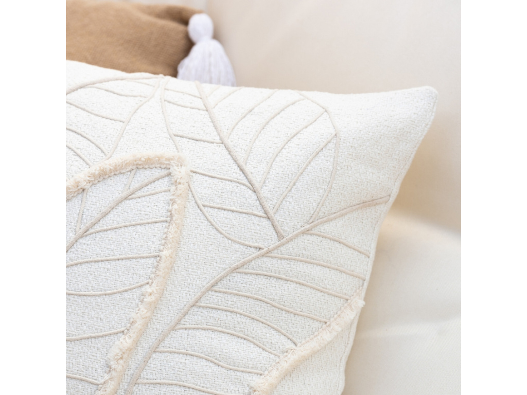 Bílý látkový polštář J-line Glynn zaručeně zútulní každou domácnost. Polštář s krásným vzorem listů bude něžnou dekorací na posteli v ložnici, ale slušet mu to bude také na pohovce v obývacím pokoji. Polštář se hodí především do skandinávsky nebo boho laděných domovů.