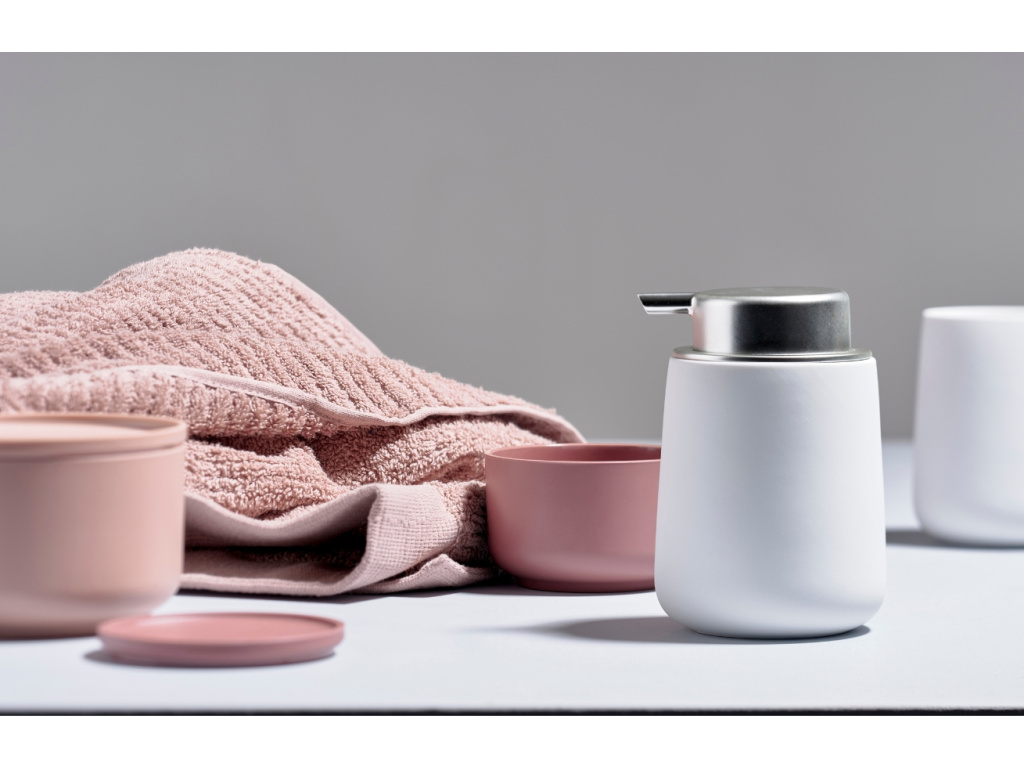 Vsaďte na krásu a odolnost porcelánu s moderním dávkovačem mýdla Nova od dánské značky Zone Denmark. Designový dávkovač na tekuté mýdlo se skládá z bílé matné nádoby z kvalitního porcelánu a kontrastní plastové pumpičky v ocelové barvě. Speciální povrchová úprava soft-touch zajistí, že je porcelán příjemný na dotek a zároveň skvěle odolný vůči nepříjemným otiskům prstů či poškrábání. Stylové dávkovače mýdla do koupelny nabízíme v pěti atraktivních barvách.