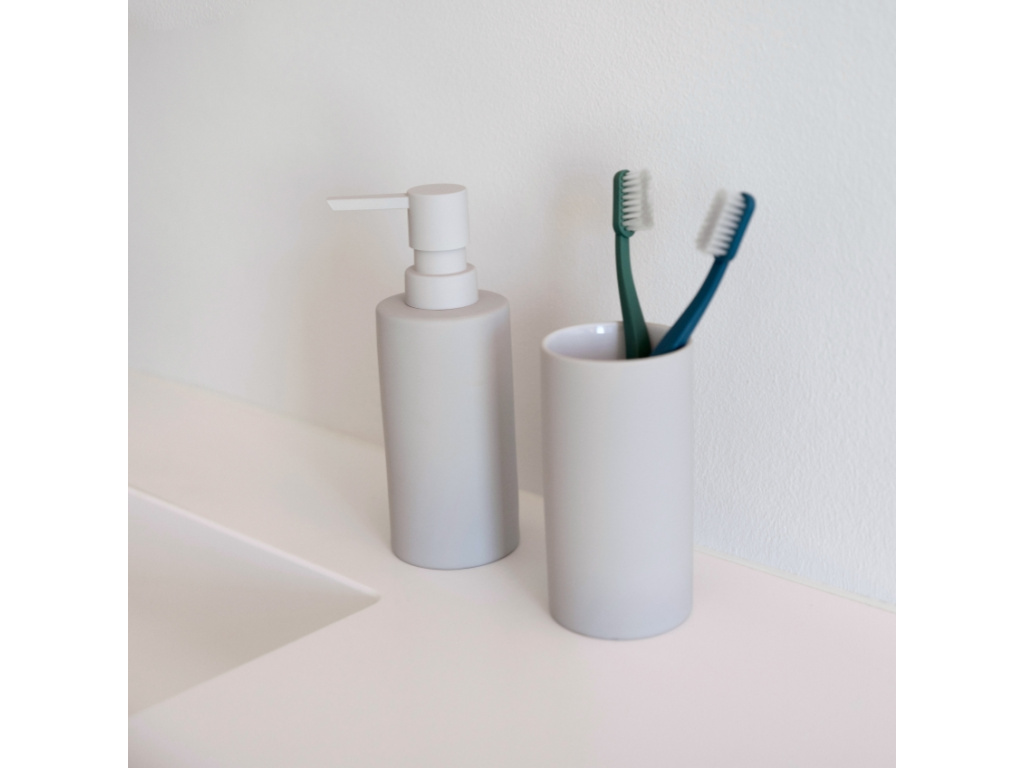 Dávkovač na mýdlo ze série Solo v matně bílé barvě se stane elegantním doplňkem každé moderní koupelny. Je vyroben z porcelánu s povrchovou úpravou soft-touch, která vytváří příjemný a luxusní pocit na dotek. Dávkovač má objem 300 ml, a kromě koupelny se skvěle hodí i ke kuchyňskému dřezu jako elegantní a nenápadná nádoba na saponát. Kolekce Solo zahrnuje také stojan na zubní kartáčky, WC štětku a odpadkový koš, přičemž všechny produkty jsou dostupné ve více barevných provedeních, což umožňuje sladit doplňky s interiérem k úplné dokonalosti.