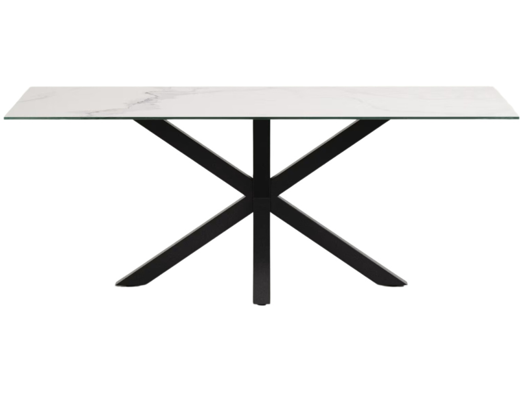 Podívám seBílý porcelánový jídelní stůl Kave Home Argo 200 x 100 cm s černou podnoží