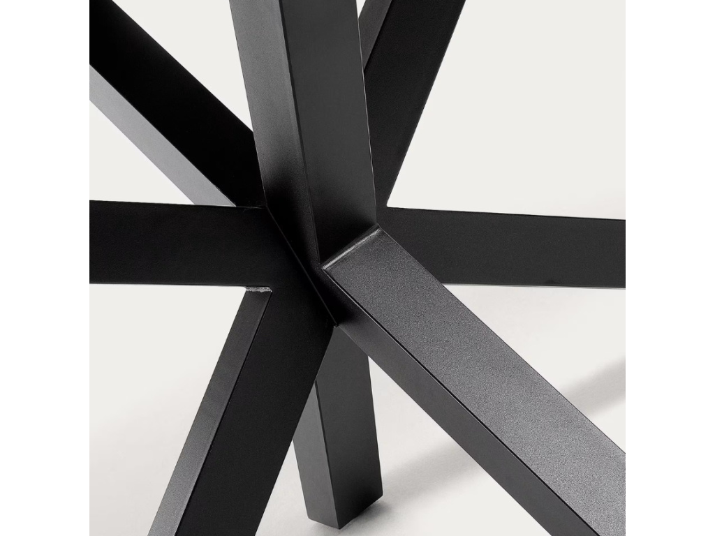 Krásný a nadčasový jídelní stůl Kave Home Argo se pyšní svým originálním a propracovaným designem. Jeho černá ocelová podnož ve tvaru hvězdy zajišťuje perfektní stabilitu a navíc každého na první pohled zaujme. Elegantní bílá porcelánová deska s dekorem mramoru se s podnoží skvěle doplňuje. Jídelní stůl se bude vyjímat zejména v minimalistických interiérech a díky svým rozměrům je skvělou volbou i pro početnější rodiny.