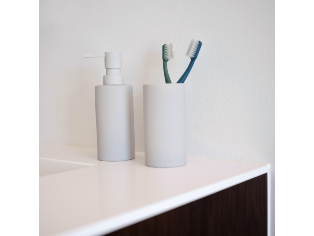 Stojan na kartáčky ze série Solo v matně bílé barvě je vyroben z porcelánu s povrchovou úpravou soft-touch, která vytváří příjemný a luxusní pocit na dotek. Jeho minimalistický design a jednoduchý tvar z něj činí elegantní prvek, který se vám bude snadno kombinovat s ostatními koupelnovými doplňky. Kolekce Solo zahrnuje také dávkovač na mýdlo, WC štětku a odpadkový koš, přičemž všechny produkty jsou dostupné ve více barevných provedeních.