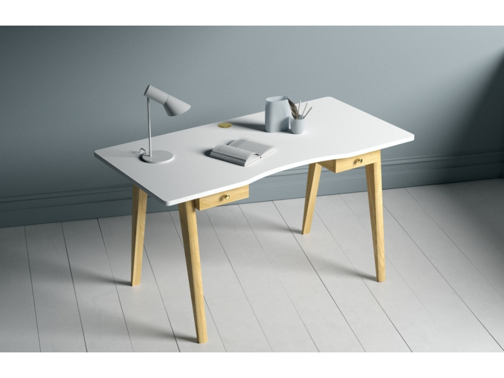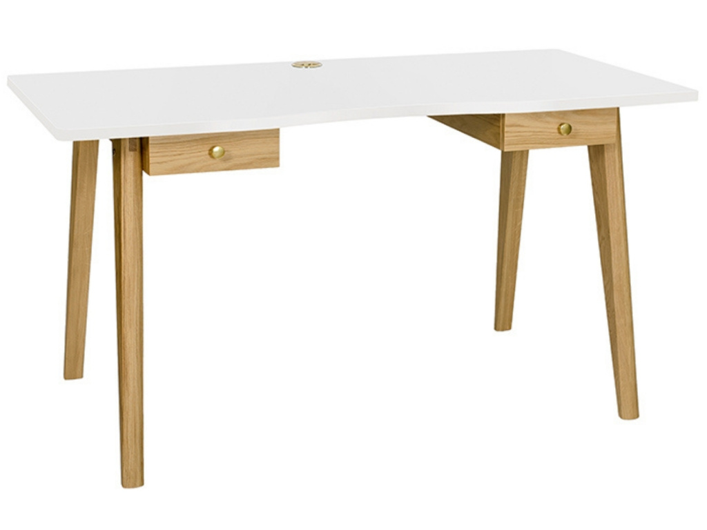 Stylový pracovní stůl Nice od značky Woodman se stane skvělým doplňkem vaší pracovny i obývacího pokoje. Deska z bíle lakované MDF ve spojení s podnoží z masivního dubového dřeva dostává nádech skandinávského a moderního stylu. Stůl Woodman Nice má dostatečně prostornou pracovní plochu a disponuje dvěma zásuvkami, které jsou vyrobeny z dřevotřískové desky dubové dýhy a nabízejí úložný prostor pro základní psací a kancelářské potřeby. Další praktickou vychytávkou je mosazný otvor pro kabely, který je umístěn na zadní straně desky stolu. Stůl se díky použitým barvám a materiálům skvěle hodí především do minimalistických interiérů.