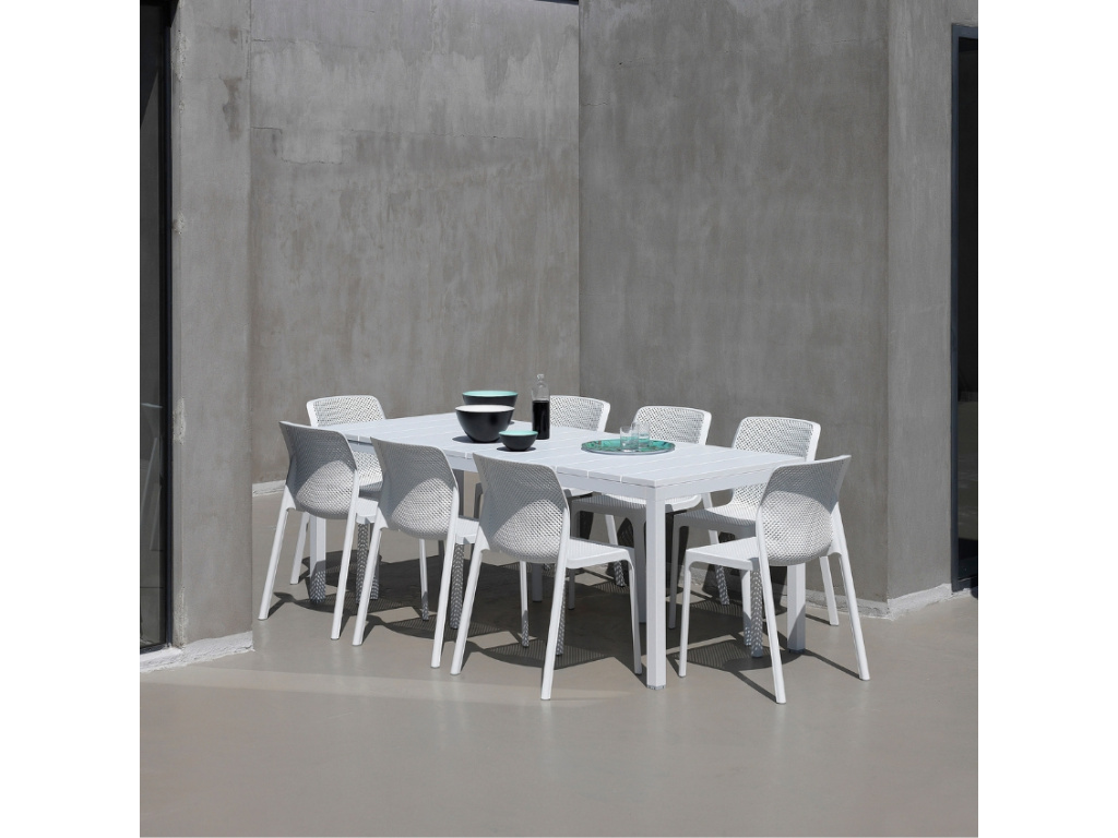 K vašim venkovním oslavám můžete zasednout u rozkládacího stolu Rio značky Nardi, který se díky jednoduché rozkládací funkci snadno prodlouží až do šířky 210 cm. Kromě provedení s deskou z lakovaného hliníku nyní značka Nardi přichází také s verzí DurelTOP. Tato deska je vyrobena z odolného polypropylenu, vyvinutého s cílem dosáhnout nejvyšší úrovně praktičnosti, odolnosti a elegance. Navíc je tento materiál odolný vůči vodě i slunečnímu záření a snadno se čistí – zkrátka je jako stvořený pro exteriérové využití. Stůl se tak skvěle hodí nejen pro domácí rodinné oslavy a grilovačky, ale také pro komerční využití – co takhle k němu usadit hosty na zahrádce vaší kavárny nebo restaurace?