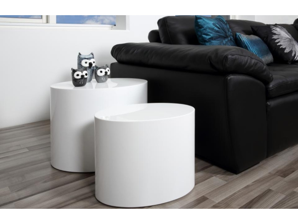 Tento set dvou originálních a designových bílých stolků Alida vnese do Vašeho interiéru eleganci a styl. Sestavit si je můžete podle vkusu a díky své univerzální bílé barvě s vysokým leskem se hodí do všech místností.