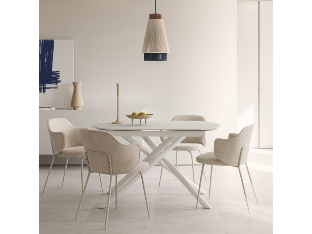 Designový jídelní stůl Kave Home Yodalia si zamilujete na první pohled. Yodalia vás uchvátí svou vrchní skleněnou deskou bílé barvy a originálně tvarovanou kovovou podnoži. Díky možnosti rozložit stůl až do délky 190 cm budete moct pohodlně pohostit více hostů a užít si tak společný čas s přáteli v pohodlí domova. Stůl se skvěle hodí domácností i do komerčních prostor.