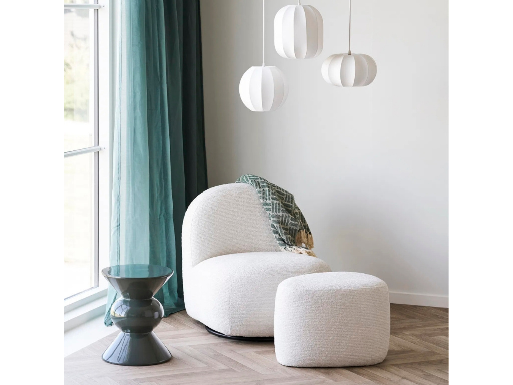 Taburet Halo přinese do interiéru jemnost a eleganci v minimalistickém pojetí. Jeho organický tvar vytvoří příjemný kontrast k ostrým liniím nábytku a dodá prostoru uvolněnou atmosféru. Měkké čalounění zve k odpočinku a působí mimořádně útulně. Díky kompaktní velikosti se snadno začlení do obývacího pokoje, ložnice i předsíně. Taburet lze využít jako pohodlné místo na sezení, oporu pro nohy nebo stylový doplněk vedle pohovky. Neutrální barevný tón krásně ladí s přírodními i moderními materiály.
