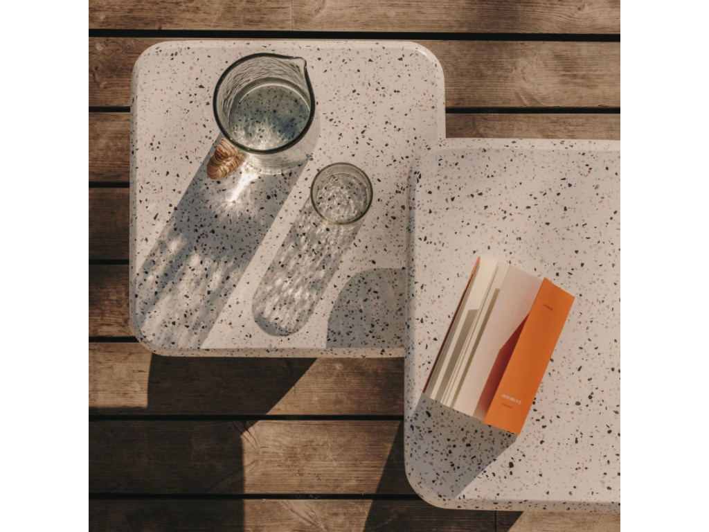 ProhlédnoutBílý terrazzo zahradní stolek Kave Home Saura 48 x 48 cm