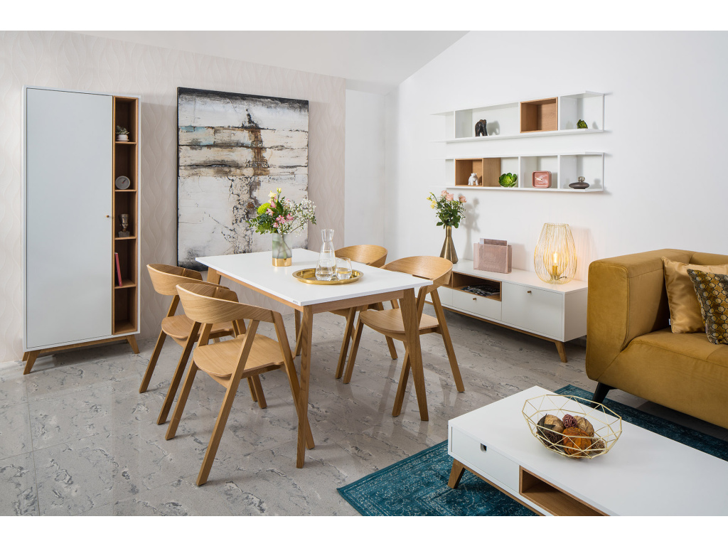 TV stolek Thia Color nabízí elegantní zpracování v poutavém duchu skandinávského designu. Thia si najde místo v obývacím pokoji a díky jemnému, nestárnoucímu spojení bílé barvy a světlého dřeva dodá interiéru nadčasový prvek. Celá kolekce Thia je česká ruční výroba.
