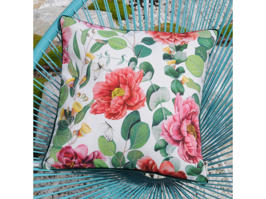 Povlak na polštář Flora od české značky BOHOLOGY zaujme na první pohled bohatým květinovým motivem. Je ušitý z kvalitních anglických látek Osborne&Little, které se vyznačují výraznými barvami a nádhernými vzory, které vznikají pod rukama světových návrhářů. Tyto látky jsou vhodné do interiéru i exteriéru, kde snesou i náhlý letní déšť. Po straně se ukrývá zip, díky čemuž lze povlak jednoduše sundat a vyprat. Pokud vás vzor s květinami omrzí, můžete polštář otočit na druhou stranu, která je jednobarevná. Povlak Flora se rychle stane vaším oblíbeným společníkem při venkovním posezení, které si můžete libovolně nakombinovat spolu s dalšími povlaky z této řady.