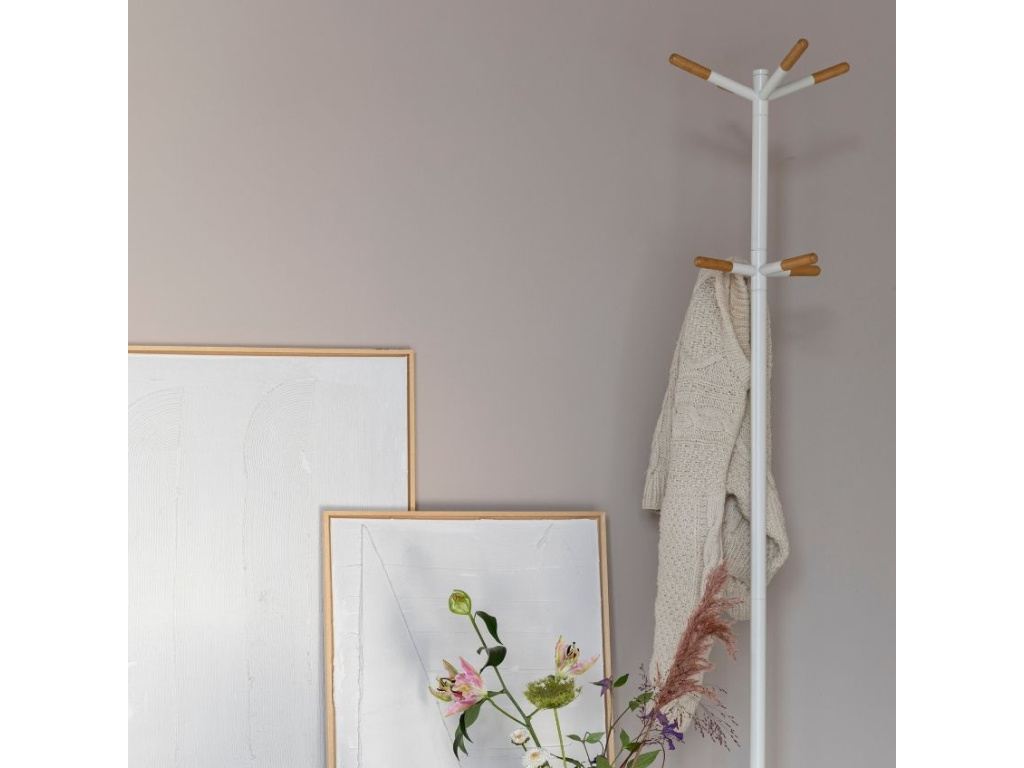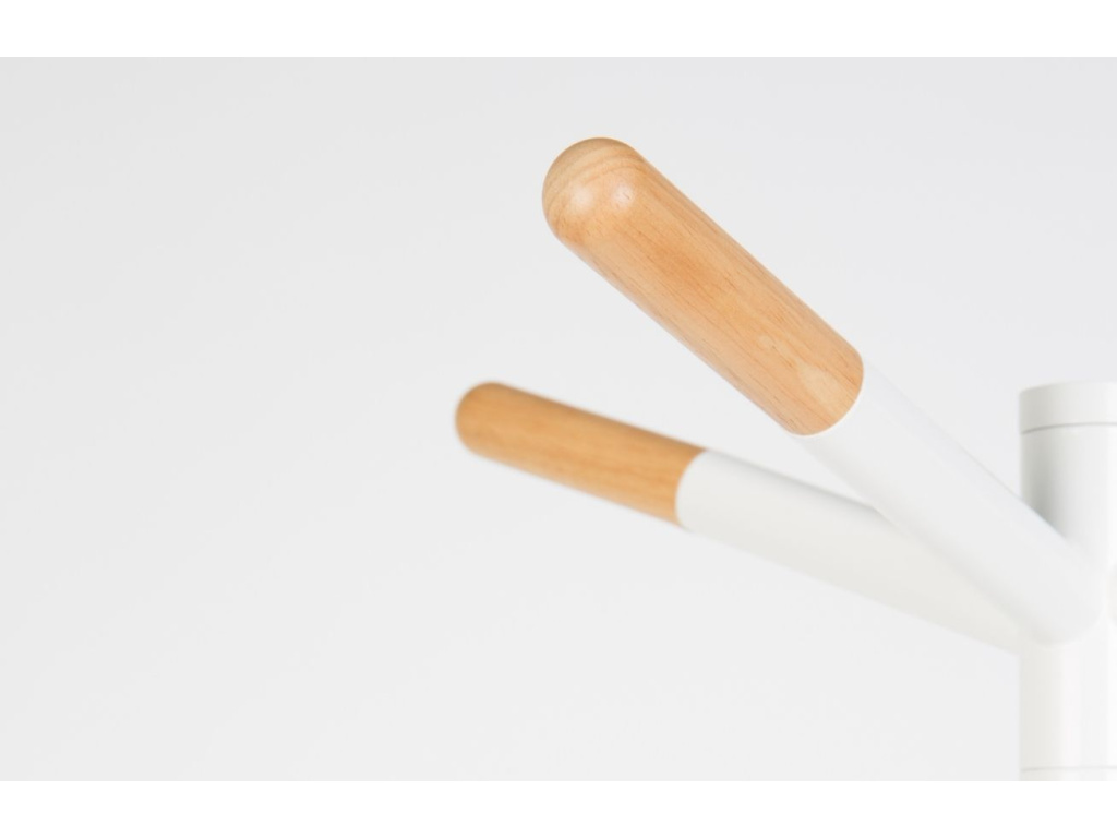 ZUIVER WOODEN TIP Vás uchvátí svojí jednoduchostí a elegancí zároveň. Věšák je obohacen o dvě řady háčků zakončených kvalitním a tvrdým kaučukovníkovým dřevem v přírodní barvě. Základna zajišťující perfektní stabilitu a tělo věšáku jsou vyrobeny z kovu a jsou pokryty tenkou vrstvou bílého práškového laku.