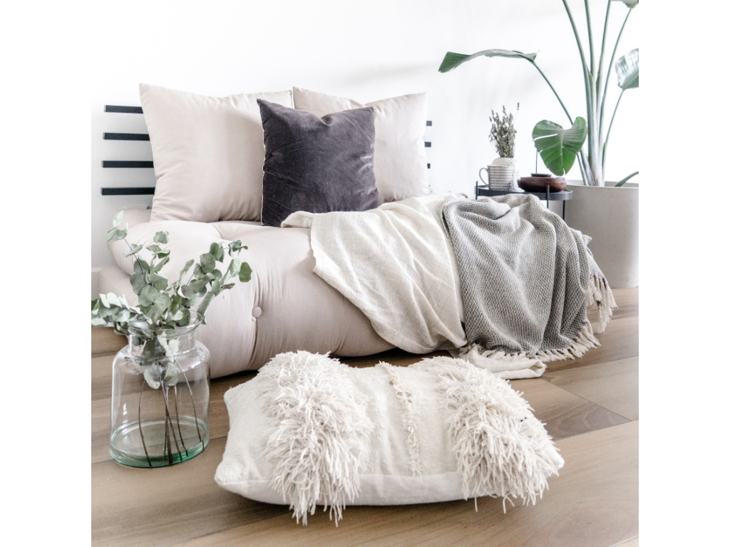Pozn.: Futonová matrace je vyrobená z přírodních materiálů, a je proto potřeba o ni pečovat. Protože absorbuje velké množství vlhkosti, nezapomínejte ji pravidelně větrat. Aby nedocházelo ke vzniku skvrn, čistěte ji pouze suchým hadříkem. V případě používání pohovky jako lůžka doporučujeme používat prostěradlo.
