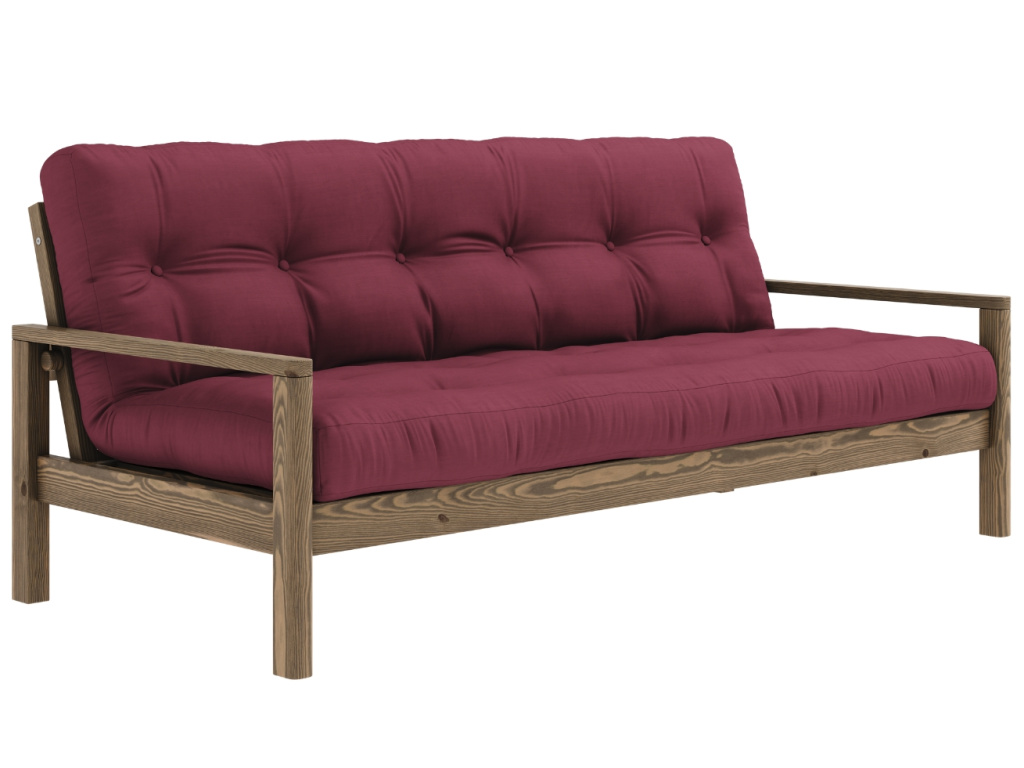 Pohovka nebo postel? Trojmístná rozkládací pohovka Knob od dánské značky Karup Design umí být obojím! Pod dřevěnými područkami se nachází dva nenápadné úchyty, které lze snadno odšroubovat a vy tak během chvilky získáte pohodlné lůžko pro vás nebo vaše hosty. Konstrukce z masivního borovicového dřeva s FSC certifikací je doplněna kvalitní 14cm futonovou matraci, která v sobě kombinuje recyklovaná vlákna a 4 cm pěny. Pohovka Knob fantasticky zapadne do skandinávských a japonských stylů interiérů, do kterých vnese jednoduchost, eleganci a ryzí funkčnost. Představuje skvělé řešení zejména pro menší prostory, do kterých přinese další místo na spaní. Vybrat si ji můžete v další barvě konstrukce či v mnoha barvách matrací.
