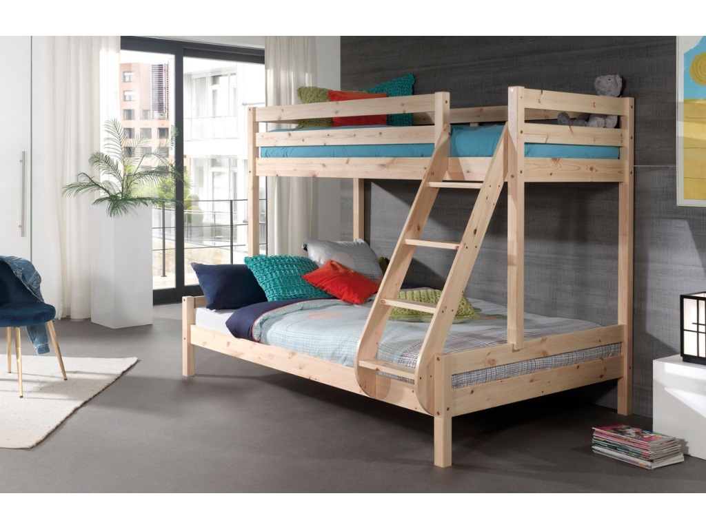 Přírodní postel Vipack Pino Martin je vyrobená z masivního dřeva skandinávské borovice. Tato postel vám zaručeně ušetří místo v domácnosti, neboť obsahuje dvě různě velká lůžka, která může využít celá rodina nebo sourozenci v dětském pokoji. Žebřík s širokými schůdky a mírným náklonem vám usnadní výstup na postel. Prostor pod postelí lze vyplnit zásuvkou z kolekce Pino od značky Vipack a získat tak praktický úložný prostor navíc.